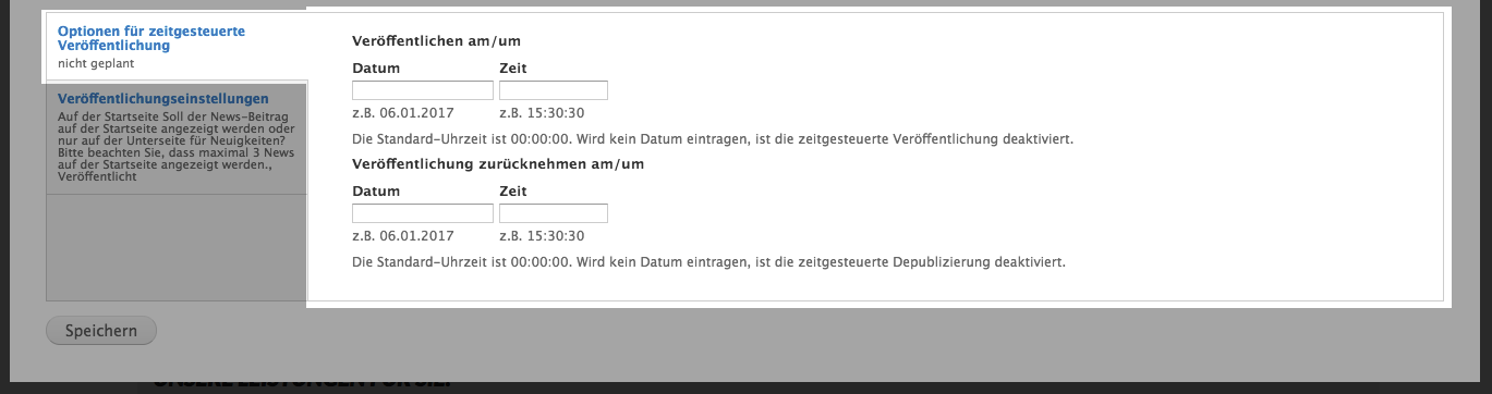 Die meisten Inhalte können Sie automatisch zu bestimmten Zeitpunkten veröffentlichen oder wieder offline nehmen. So können Sie z.B. Aktions-Banner nur saisonal anzeigen oder bestimmte News nur bis zu dem beworbenen Event.
