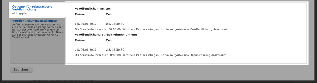 - Auf der Startseite: Nur wenn diese Option gewählt ist, kann der News-Beitrag überhaupt auf der Startseite erscheinen.