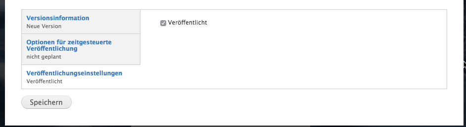 Um Inhalte sofort von Ihrer Website zu entfernen, entfernen Sie im Bearbeitungs-Formular unter Veröffentlichungseinstellungen das Häkchen bei Veröffentlicht und klicken dann auf Speichern.